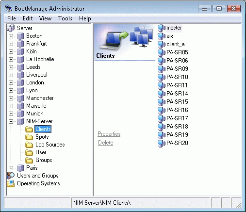 IBM AIX NIM (Network Installation Management) NIM provides an environment to remotely install, upgrade, backup and maintain IBM AIX machines over the network. Using a management application (Network Installation Manager) on the NIM server, AIX filesets can be installed and managed remotely on NIM clients. In a NIM system, the managed objects are NIM clients, SPOTs, LPARs, lpp_sources, mksysb images, etc. BootManage Administrator / NIM Integration Starting with version 7.5, the bootix BootManage Administrator supports the seamless integration of IBM AIX NIM servers into its management console. This allows managing BMA and NIM servers with a unified look-and-feel experience. If you want to manage Microsoft Windows computers (servers, desktops, laptops) and IBM AIX NIM-managed machines from a single management console, please feel free to: - download the BootManage Administrator demo